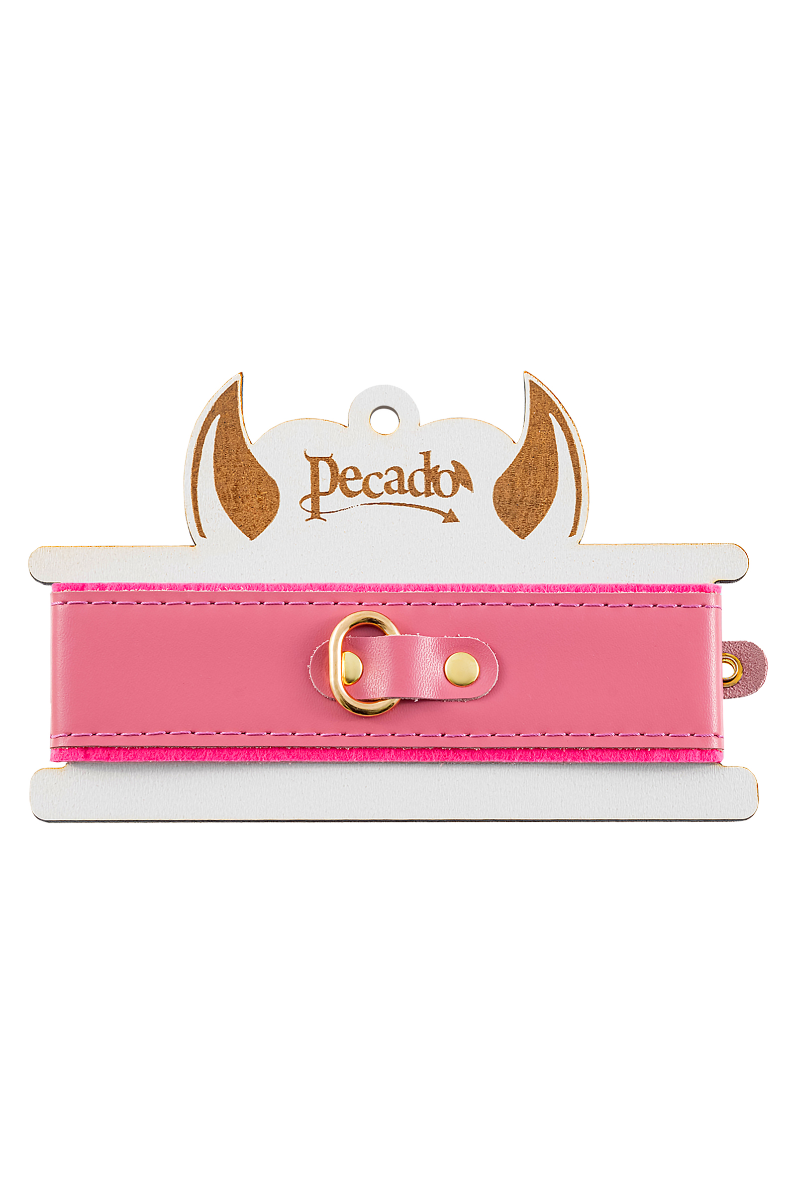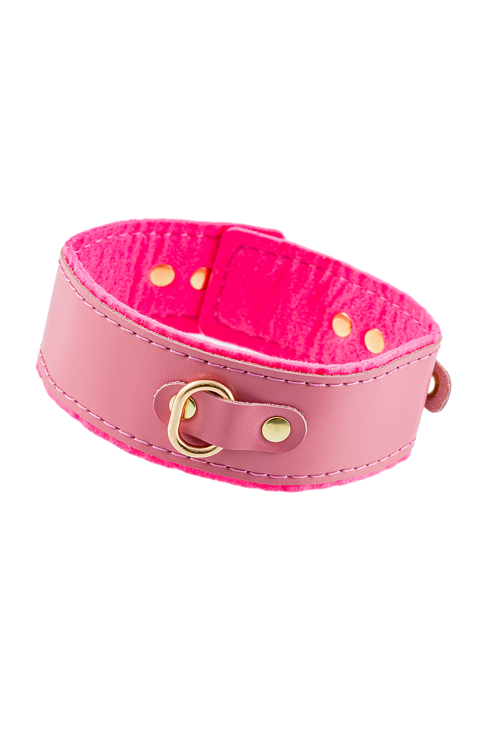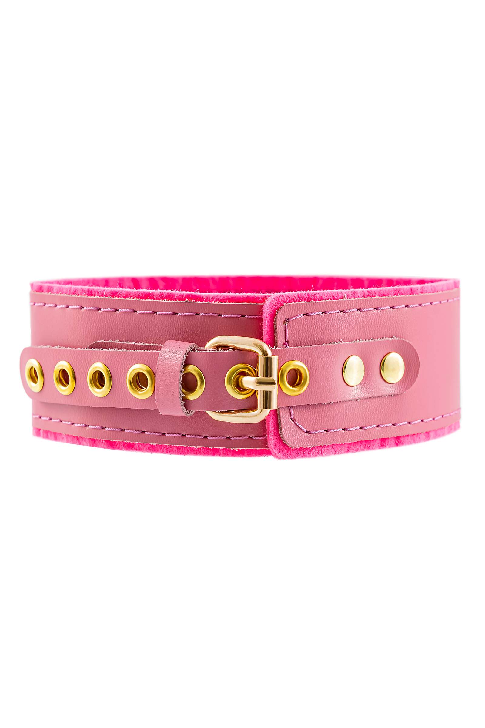 Ошейник Pecado BDSM, двуслойный с подкладкой из фетра и прошивкой, натуральная кожа, розовый